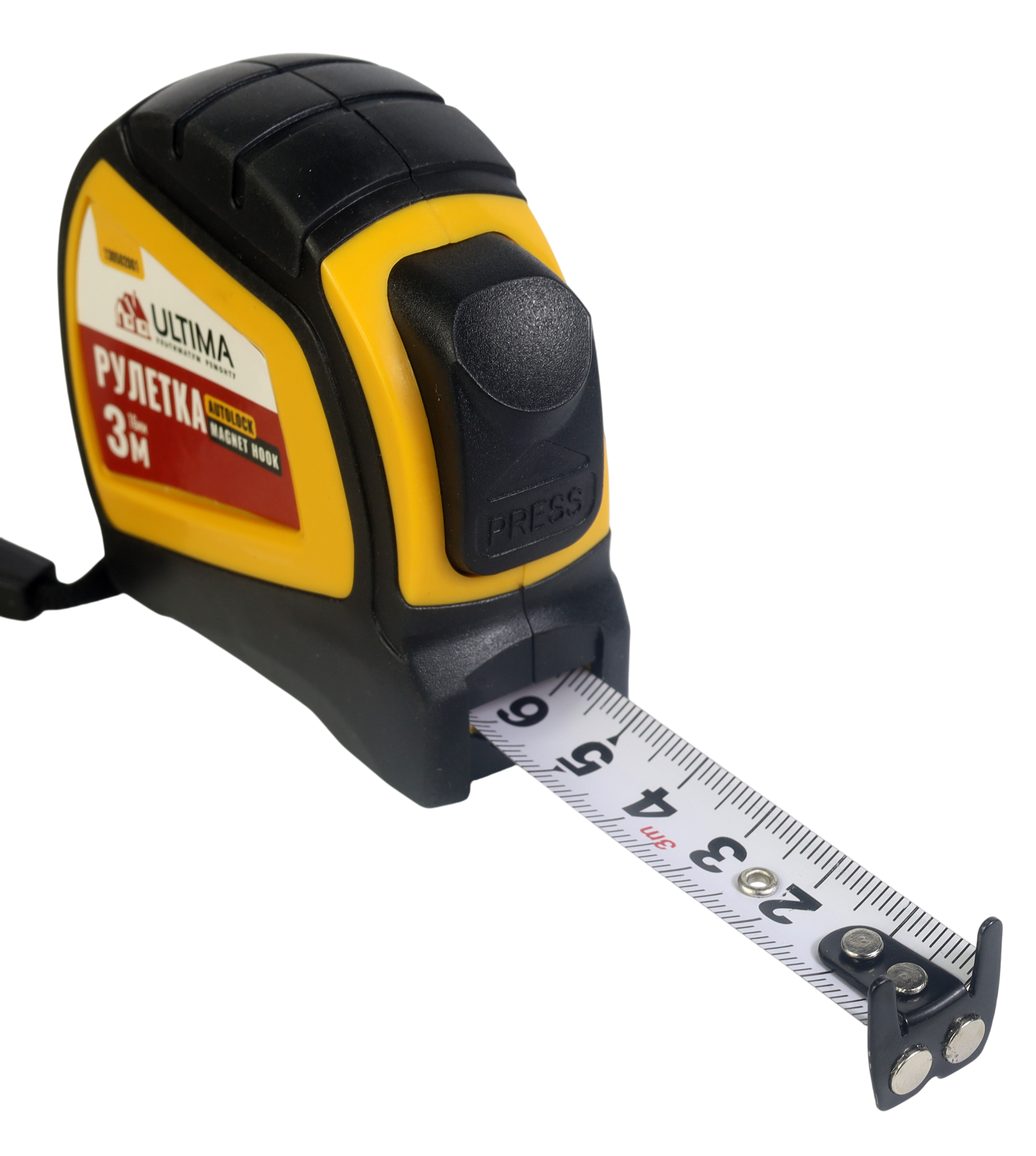 Рулетка Autolock Magnet Hook оснащена износостойким полотном, что вместе с обрезиненным корпусом обеспечивает больший срок службы инструмента. Функция автостоп облегчает замеры, а благодаря двойному магнитному зацепу и двухсторонней шкале рулеткой удобно пользоваться при измерении высоких объектов, стен, потолков.