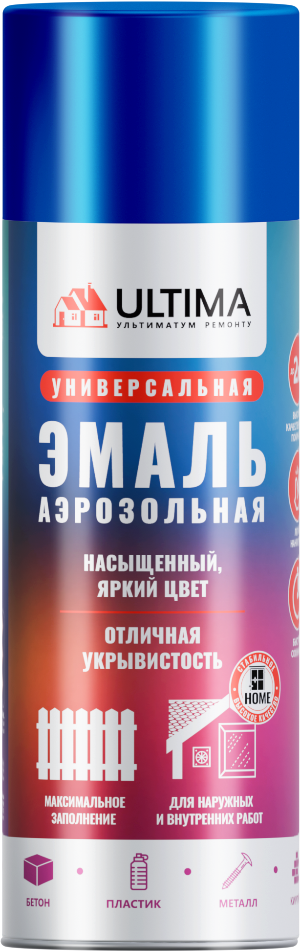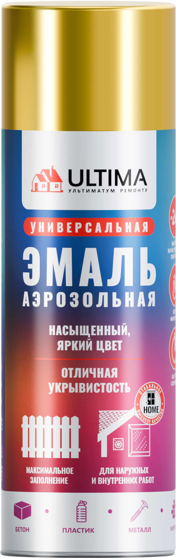 Акриловая краска ULTIMA с характерным металлическим отблеском в аэрозольном баллоне для наружных и внутренних работ.