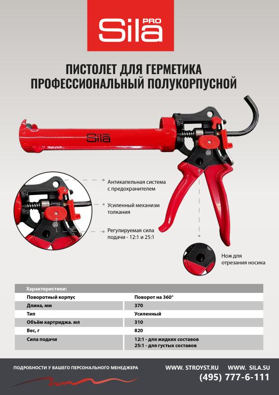 1. Пистолет SILA Pro для герметика — профессиональный полукорпусной